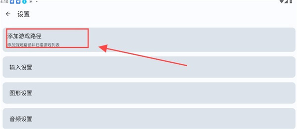 3、在设置界面中选中添加游戏路径进入
