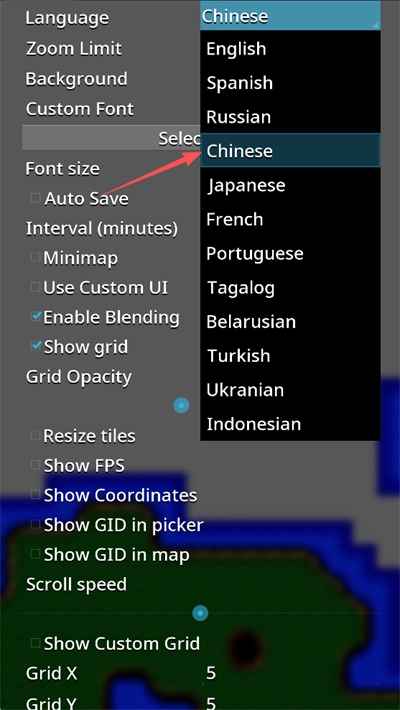在NotTiled软件中,支持非常多地区的语言,各个地区的用户都可以轻松使用这款软件来制作心仪的像素风地图。