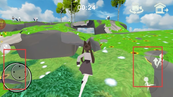 通过操控红色方框里的虚拟按钮来指挥角色移动与跳跃,避开怪物的追击,达成游戏目标,从而获得游戏分数和奖励。