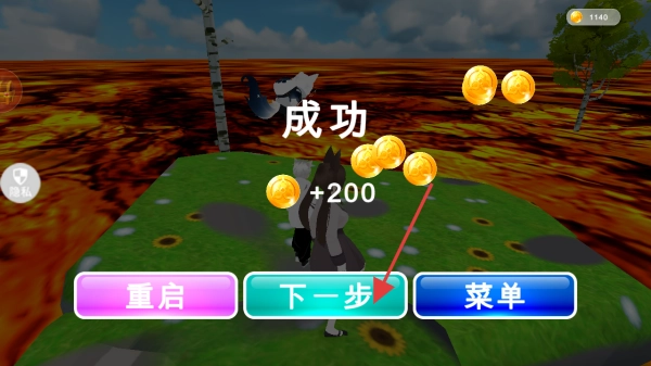 当顺利抵达终点后,点击“下一步”按钮,即可继续推进游戏任务,以此获取游戏分数与奖励,逐步积累游戏资源,进而提升角色的各项能力。