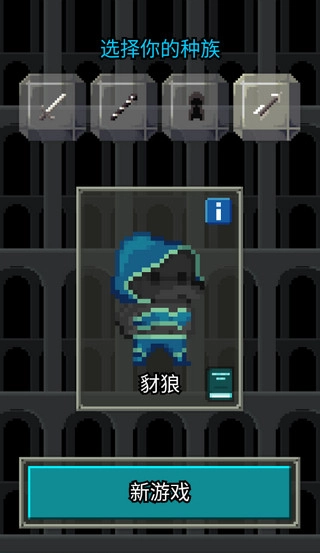 3、选好职业后还得选择种族,确定好自己的种族后再次点击“新游戏”就能进入地牢了。