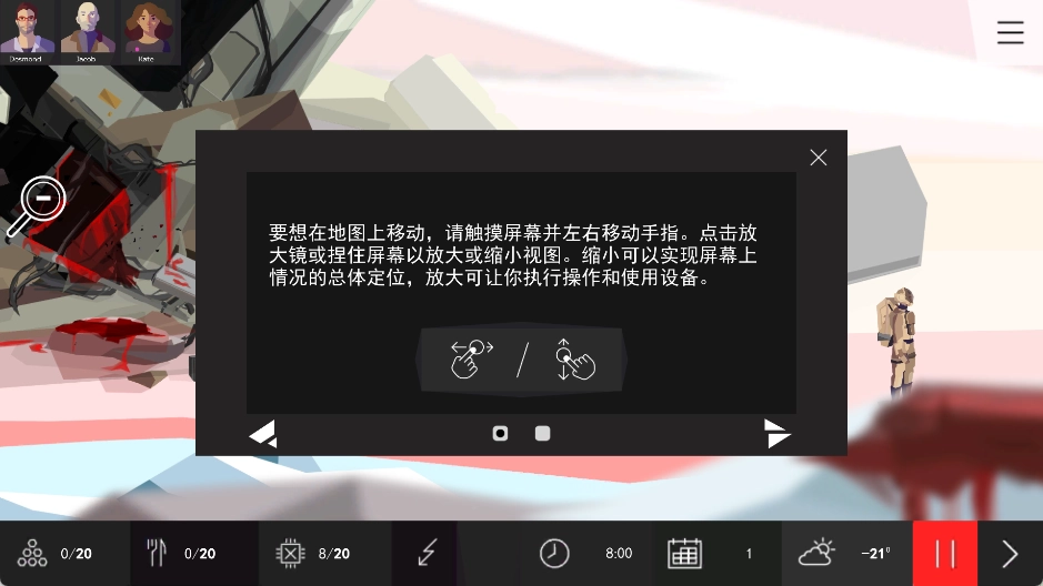 3、角色管理:可对至多5名幸存者进行管理,实时监控他们的健康值、饥饿度与心理状态,并能为其安排休息、进行安抚,或是让他们进入健康舱进行恢复。