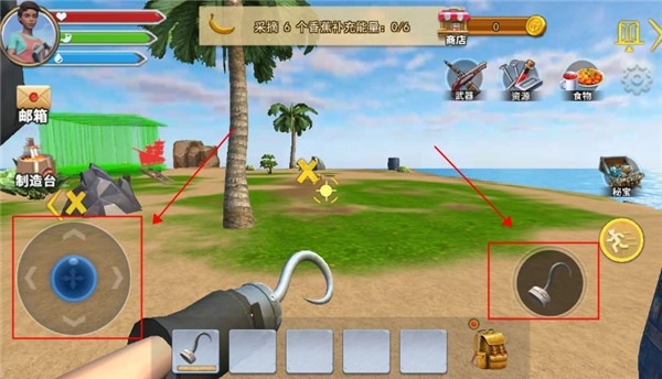 3、试着用左边的操纵杆操控角色移动,借助右边的钩子进行攻击。