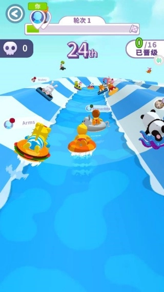3、在水道之上,开启畅快的冲刺,甩开更多对手,收集沿途的钻石宝箱。