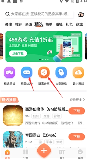 1、点击图中所示位置的“精品MOD”和“玩家分享”选项,这两个选项都能提供游戏资源。