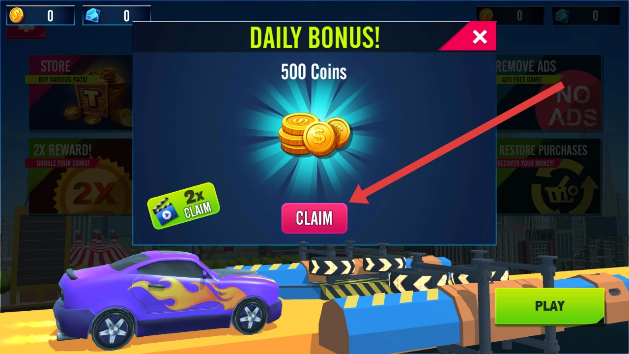 进入游戏后,点击DAILY BONUS弹窗里的粉色CLAIM按钮,就能领取500金币奖励。