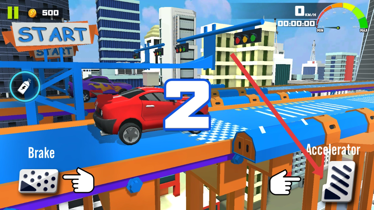 在比赛准备阶段,要耐心等待倒计时结束,准备点击右侧的Accelerator按键,以此控制赛车起步并加速。
