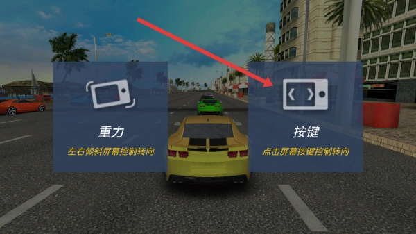 在模式选择界面里,点击按键模式选项并确认后,就能进入赛车比赛场景,开始竞速游玩。