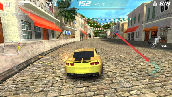 通过点击屏幕左右两侧的方向按键,操控车辆向左或向右转动方向,巧妙避开障碍物、调整在赛道上的位置。