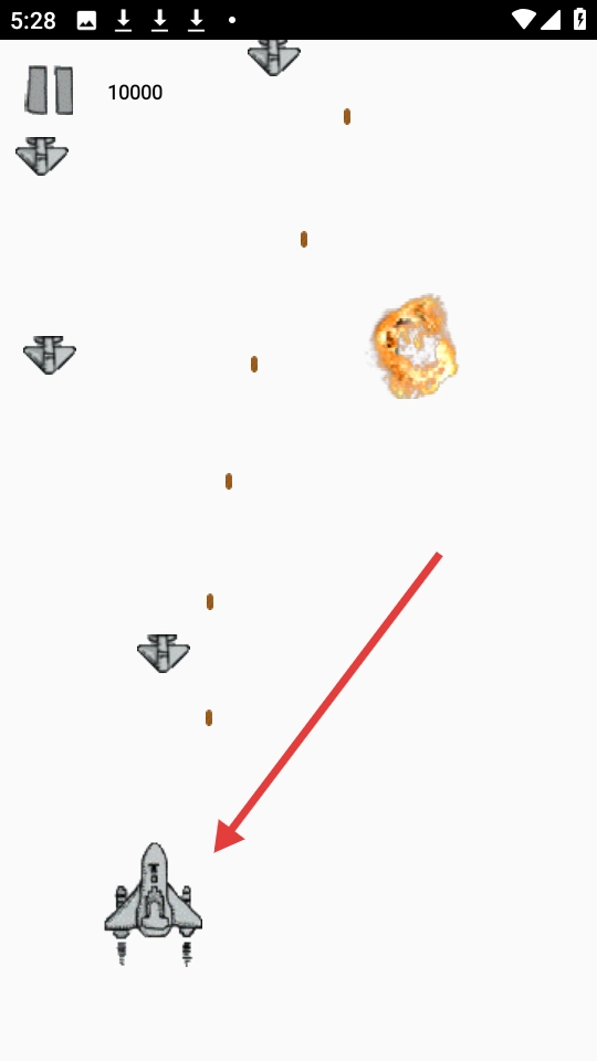用手指在屏幕上滑动即可操控战机移动,子弹会自动发射以攻击前方的敌人。