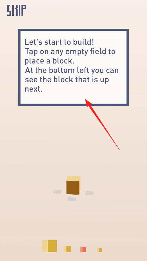 教学继续推进,现在要开始搭建了哦。注意看左下角显示的方块,点击空白的地方把它放上去。每次放好之后,左下角会自动切换到下一个方块,你接着在空地上点击放置就行,慢慢就能堆出属于自己的结构啦。