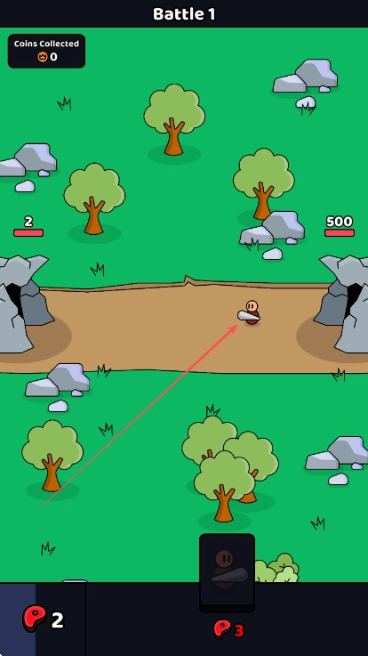 留意战场态势,调度战士对敌人发起进攻,收集CoinsCollected所显示的金币,积累资源进而取得战斗的胜利。