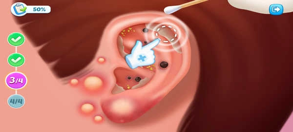 2、在游戏里,玩家会负责经营一家医院,需要对病人进行救治,比如帮病人清理耳朵。