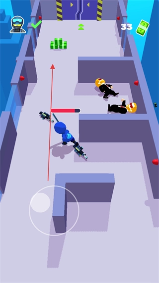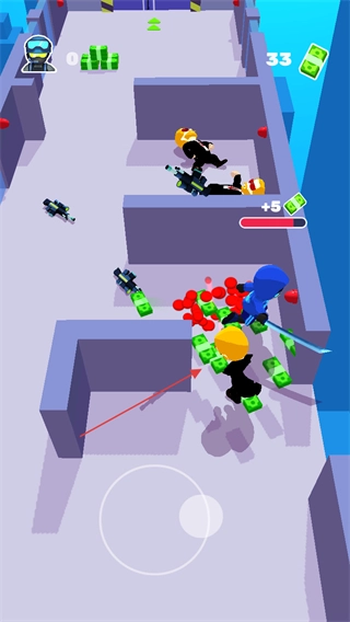 靠近敌人后,展开攻击,战胜敌人就能得到绿色钞票,与此同时要留意自己的血量。