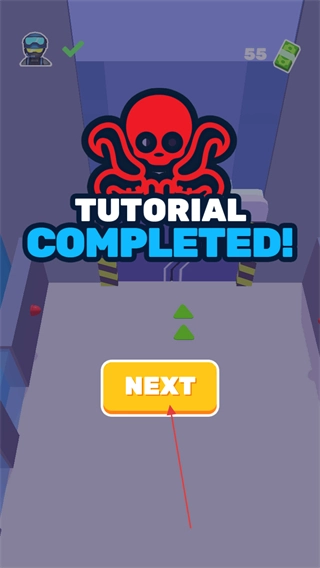 完成教程关卡后,点击NEXT按钮,即可进入下一个关卡继续挑战。
