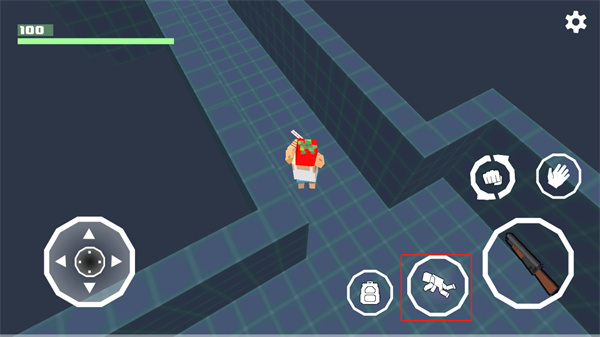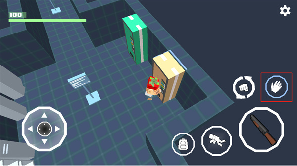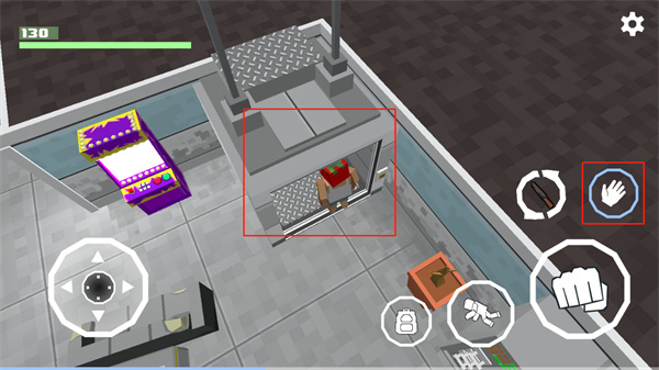2、进入电梯后,按住游戏界面右侧的小手按钮,即可前往外部区域。