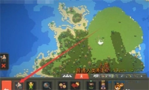 4、接下来玩家可以把底部那些人物、动物、地板之类的游戏图标添加到岛屿上,以此来模拟世界的发展进程。