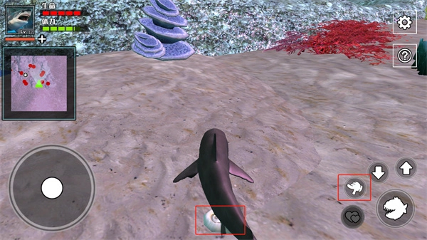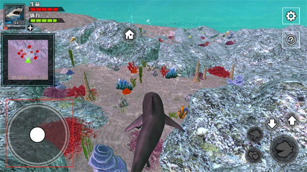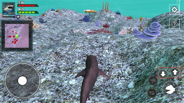 3、通过摇杆滑动来控制鲨鱼在水中移动。