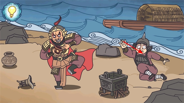 触发剧情后,先点击碗进行互动,接着长按士兵的嘴巴,以此推动故事发展。