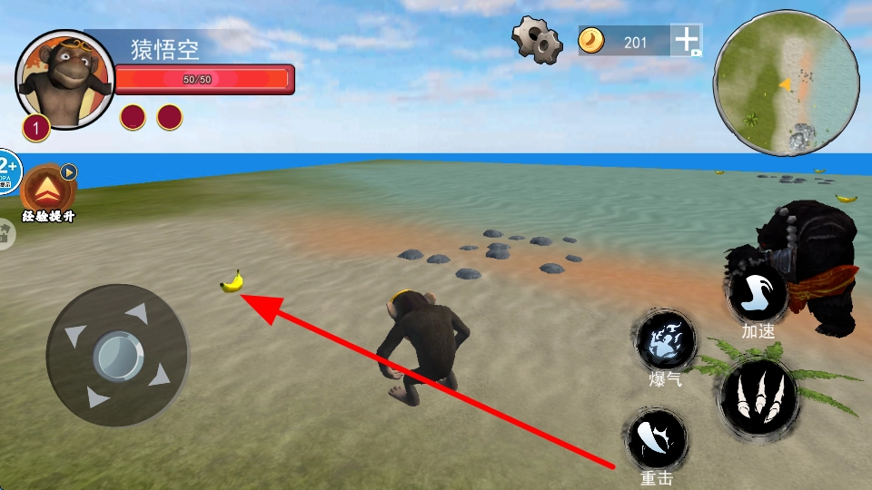 移动猴子靠近香蕉就能拾取,拾取香蕉可以增加角色经验,帮助提升等级。