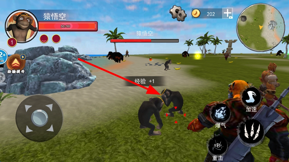 要击败与自己等级相当的猴子,需运用技能搭配普通攻击对它展开攻势,将其成功击倒后,就能获得战斗奖励,进而增强角色的能力。