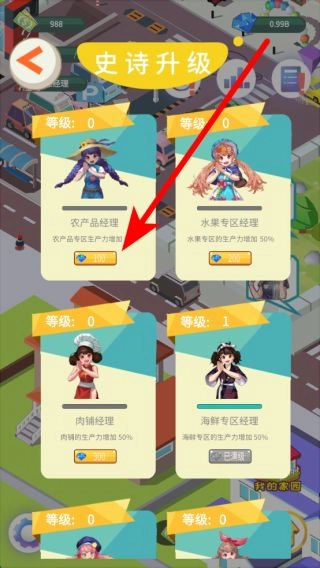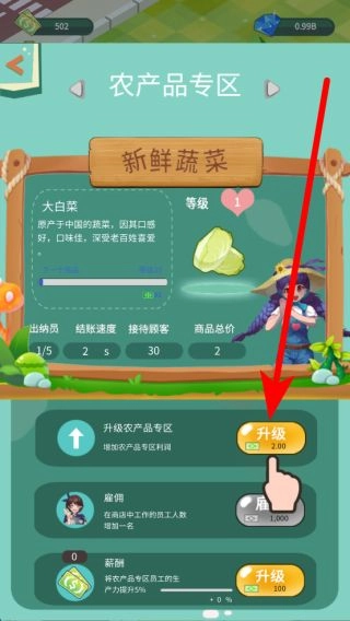 进入超市后,可以划分不同的商品专区,例如农产品专区。以新鲜蔬菜类的大白菜为例,投入一定资金进行升级后,能够增强该商品的吸引力。