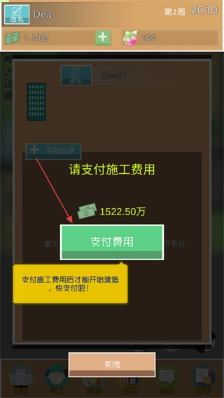 当看到支付施工费用的提示时,点击支付费用按钮,投入资金即可启动楼盘建设。