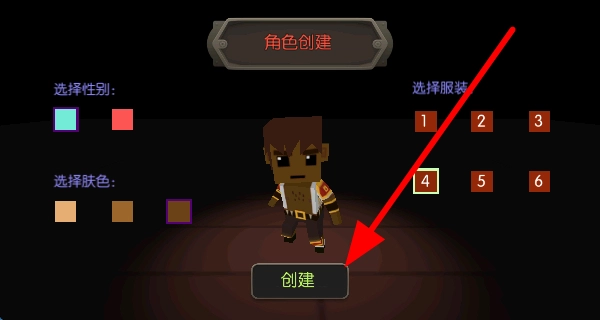 在角色创建界面,选择性别、肤色与服装,搭配妥当后点击创建按钮,即可生成专属于你的冒险角色。