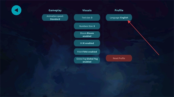 在设置界面的Profile标签页中,能看到当前语言设置显示为English,此时点击即可展开语言设置的下拉列表。