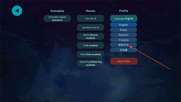 在语言选择列表里,点击简体中文这一选项,就能把游戏语言切换成简体中文,这样就完成了语言设置的调整操作。