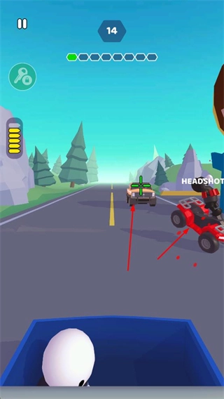 进入射击关卡后,瞄准敌方车辆所在区域进行射击,触发“HEADSHOT”效果,以此推进关卡进度并提升个人战绩。