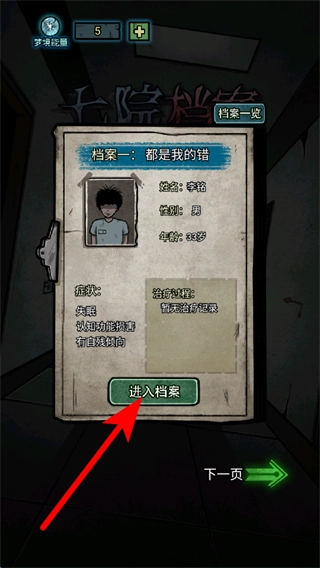 在选择界面,点击“进入档案”按钮是解锁“都是我的错”对应档案剧情的关键步骤,完成点击后即可进入相应场景。