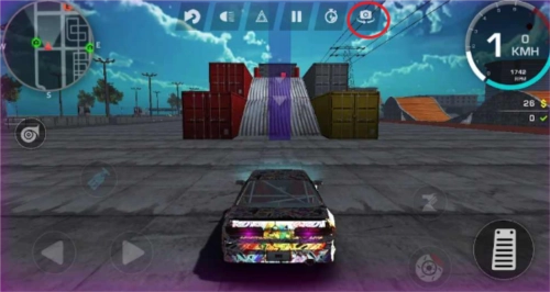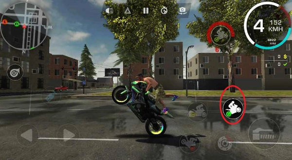 屏幕右侧第二个动作是摩托车车头抬起,与驾驶键同时按下,就能做出车头翘起向前行驶的特技动作。