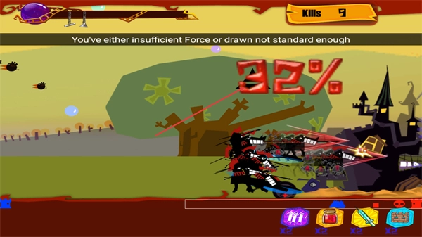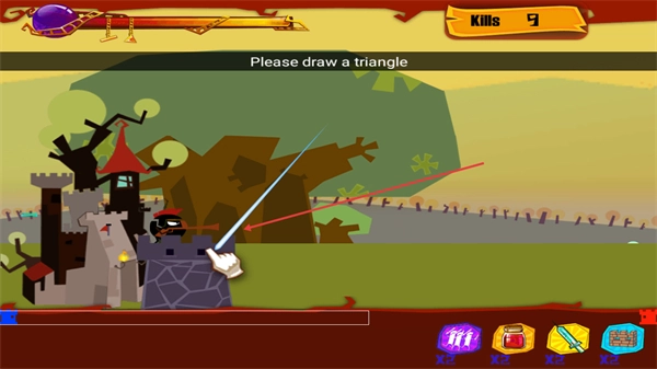 战斗时按照界面提示画出三角形,就能触发相应技能攻击敌人,与此同时Kills计数会不断累积,通过这种方式来推动战斗向前发展。
