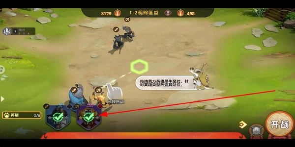 准备阶段可长按己方英雄进行拖动,以此调整他们的站位;要依据英雄的不同类型来搭配恰当的站位布局;待所有设置都完成后,点击开战按钮即可启动战斗。