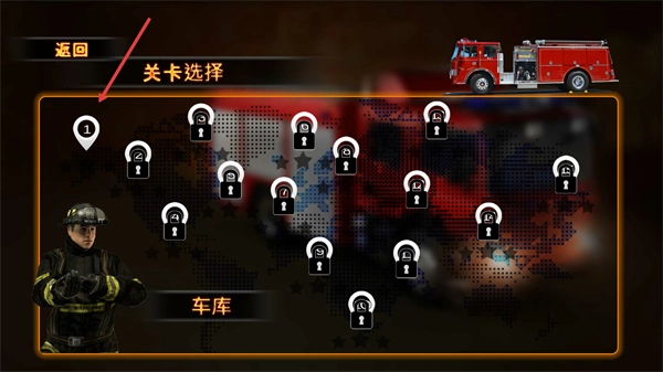 进入关卡选择界面后,点击已解锁的1号关卡,就能开启首次消防救援任务。