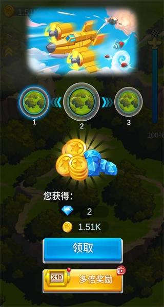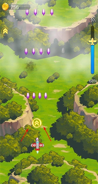 战机起飞后,通过击败敌方单位来获取金币,积累资源,以此推进关卡进度。