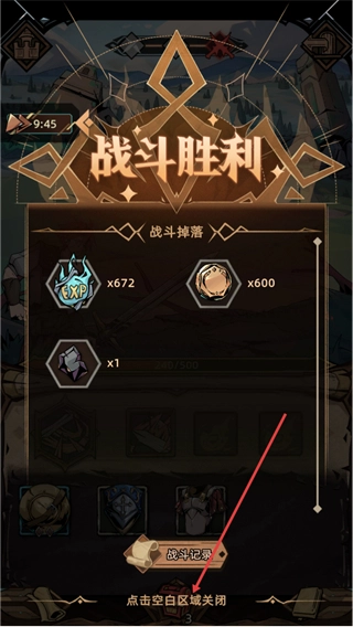 战斗胜利后会呈现战斗胜利界面以及战斗掉落奖励,查看结束后点击空白处关闭该界面,就能继续推进后续的游戏流程。