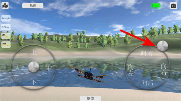支持多视角切换,可全方位观察飞行状态;若遇到无人机失控情况,点击重置功能即可快速恢复正常飞行状态,从而降低因操作失误带来的挫败感。