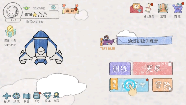 2、多元机型(收集乐趣):游戏内设计有多款基础属性相同或存在细微差别的飞机机型,每款机型都配有独一无二的涂装外观,包含酷炫金属风、卡通萌系风、复古经典风等多种风格类型。玩家能够通过完成游戏任务、达成对战成就或者参与活动等途径,逐步收集不同涂装的飞机,组建专属于自己的个性化飞行部队,以此满足收藏与展示的需求。