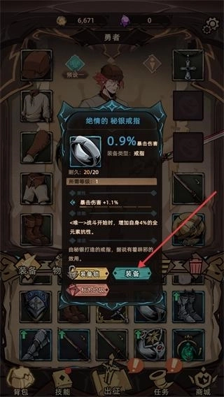 在装备界面选中绝情的秘银戒指后,查看其属性加成,点击下方的装备按钮,即可将该戒指穿戴到角色身上提升属性。