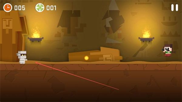 控制角色在古墓里移动,攻击木乃伊之类的怪物,收集道具来提高击杀数量。