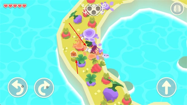 在岛屿场景中,你可以通过屏幕操控角色向四个方向移动,去探索那些遍布着彩色植物与各式建筑的区域。