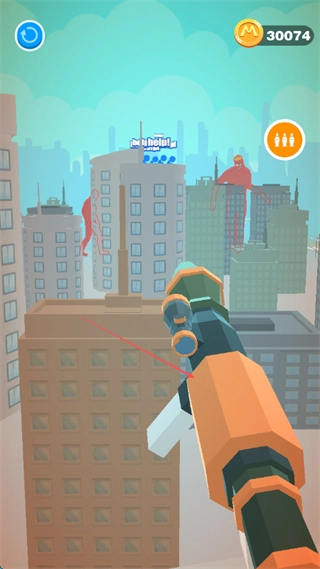 操控枪械对准城市里的红色巨人,找出它的弱点所在,做好射击准备。