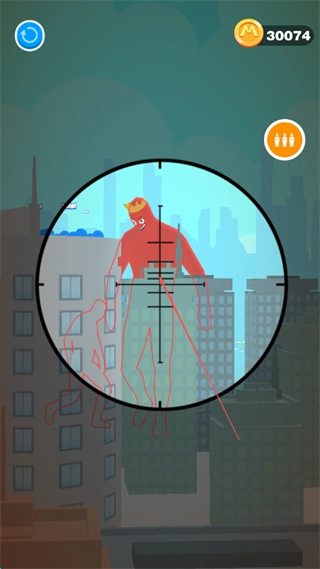 游戏采用定点射击模式,玩家无需操控角色移动,只需专注于瞄准和射击环节;操作方式简化为拖动屏幕瞄准、点击屏幕射击,部分关卡还支持长按开镜来放大视野,核心玩法聚焦于针对敌人弱点进行精准狙击。
