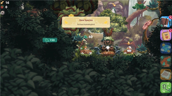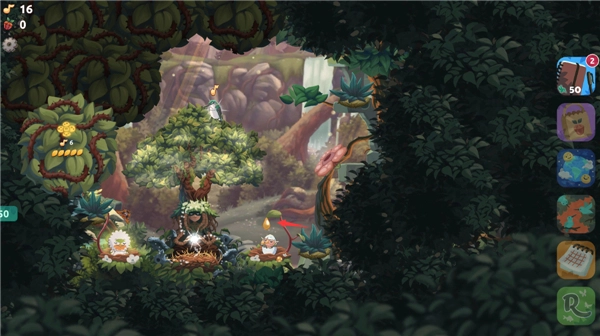 5、资源循环利用:成年鸟会定期自动产出各类资源,收集这些资源后,既可以用来建造新的鸟巢以容纳更多鸟类,也能够解锁新的植物,从而丰富场景内容。