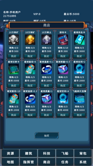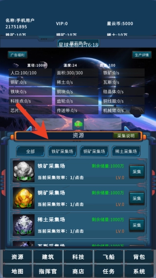 1、借助自动化挖矿机制获取基础资源,并对其进行合理调配,分别用于建筑建造和科技项目的研发工作。