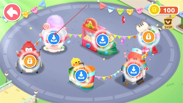 区域内会分布着一些设施,你可以点击想体验的游戏来启动机器所需的资源。