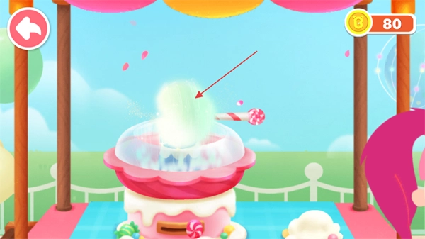 通过滑动屏幕的方式,转动棉花糖棒使棉花糖变大。