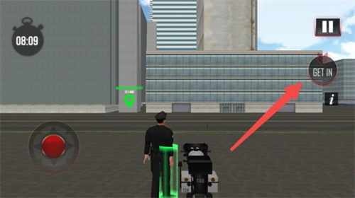 在这个场景里,玩家需以第三人称视角操控角色移动,当靠近自己的载具时,点击画面右上角的按钮就能进入驾驶状态。